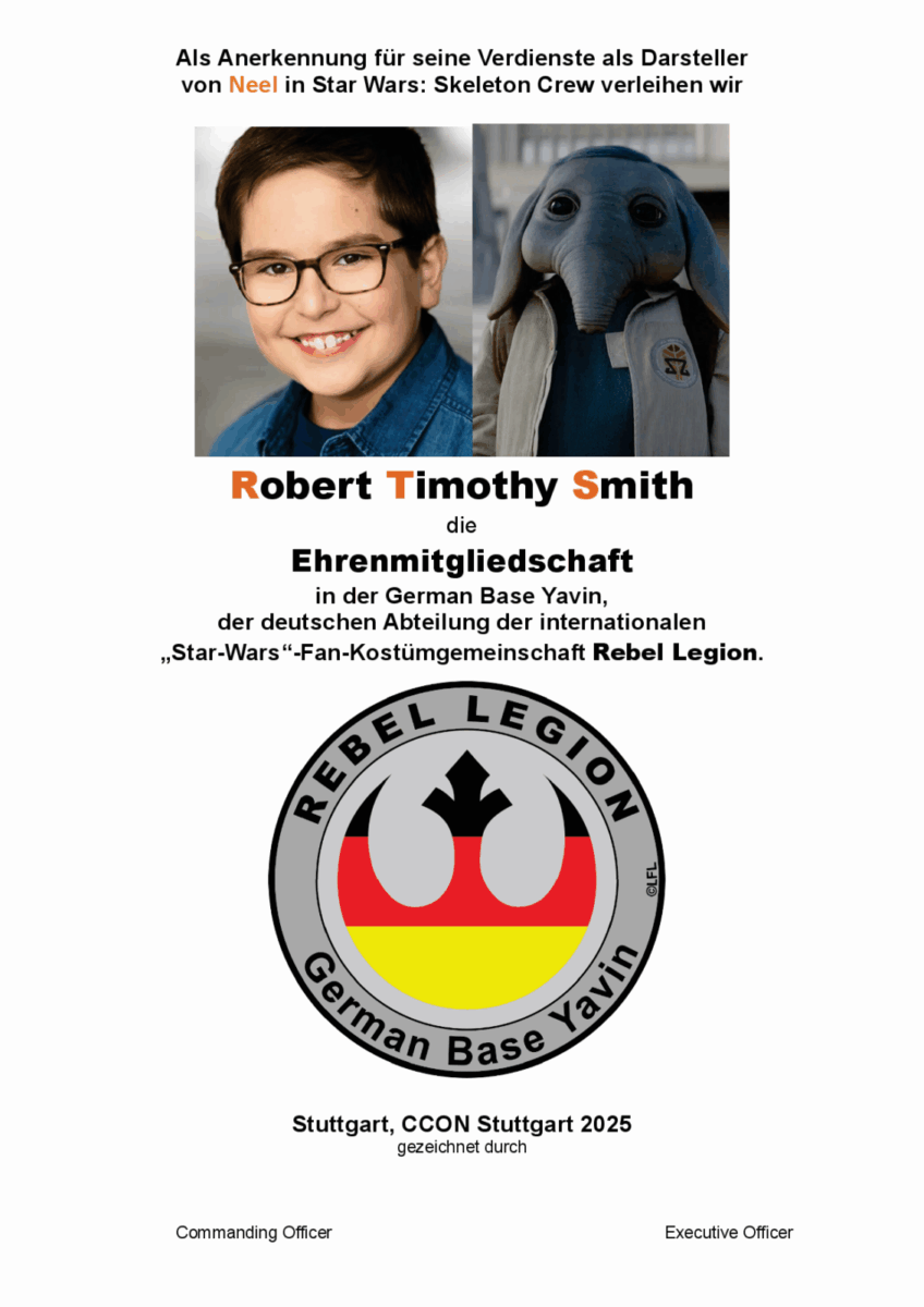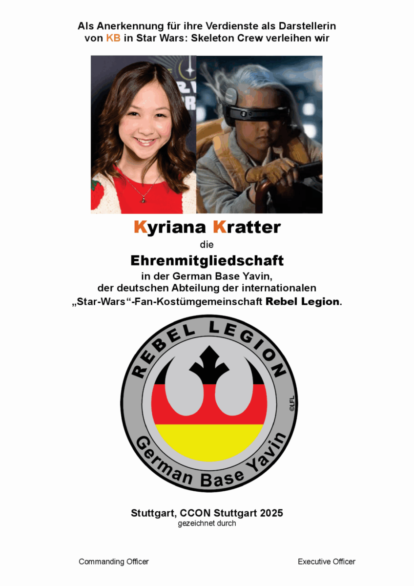 Wir überreichten Ihnen die Ehrenmitgliedschaft in der German Base Yavin.